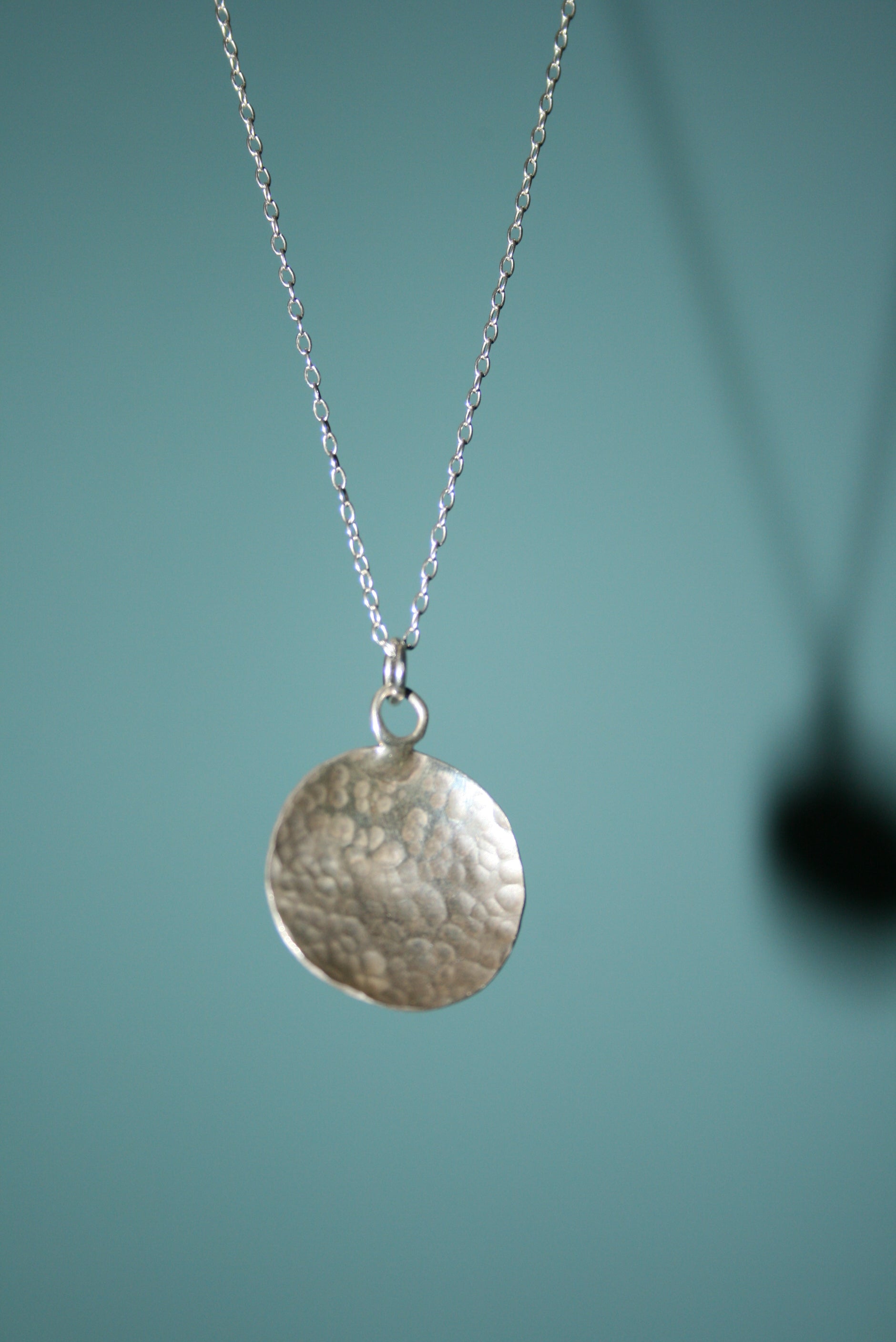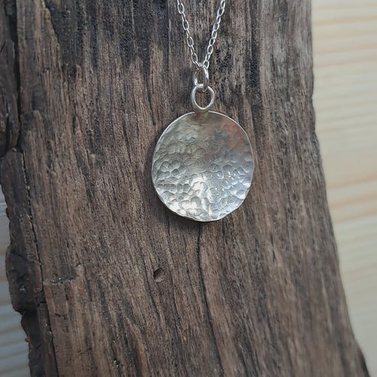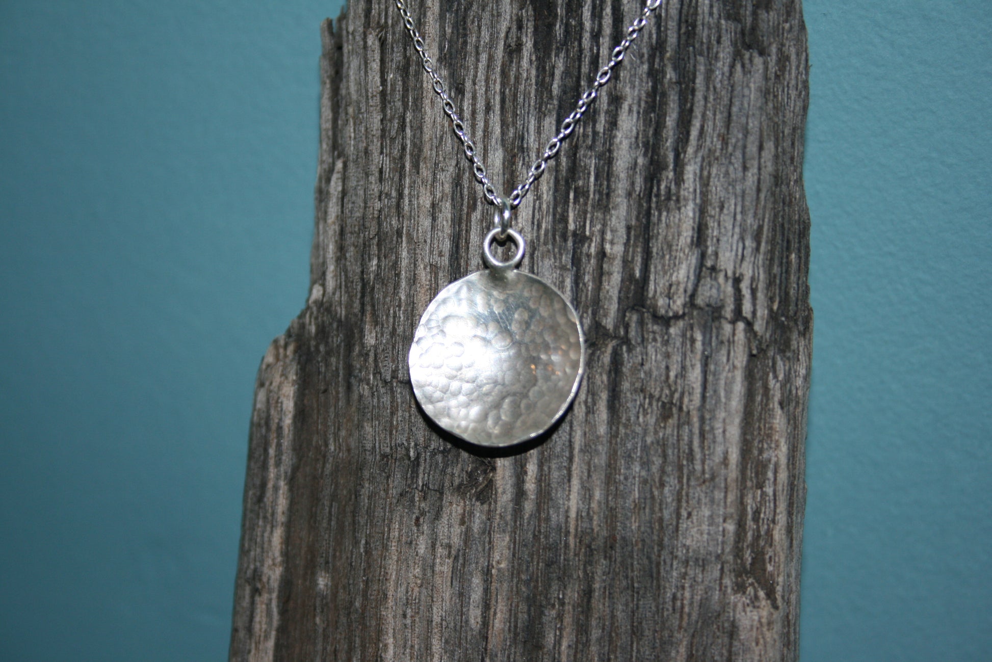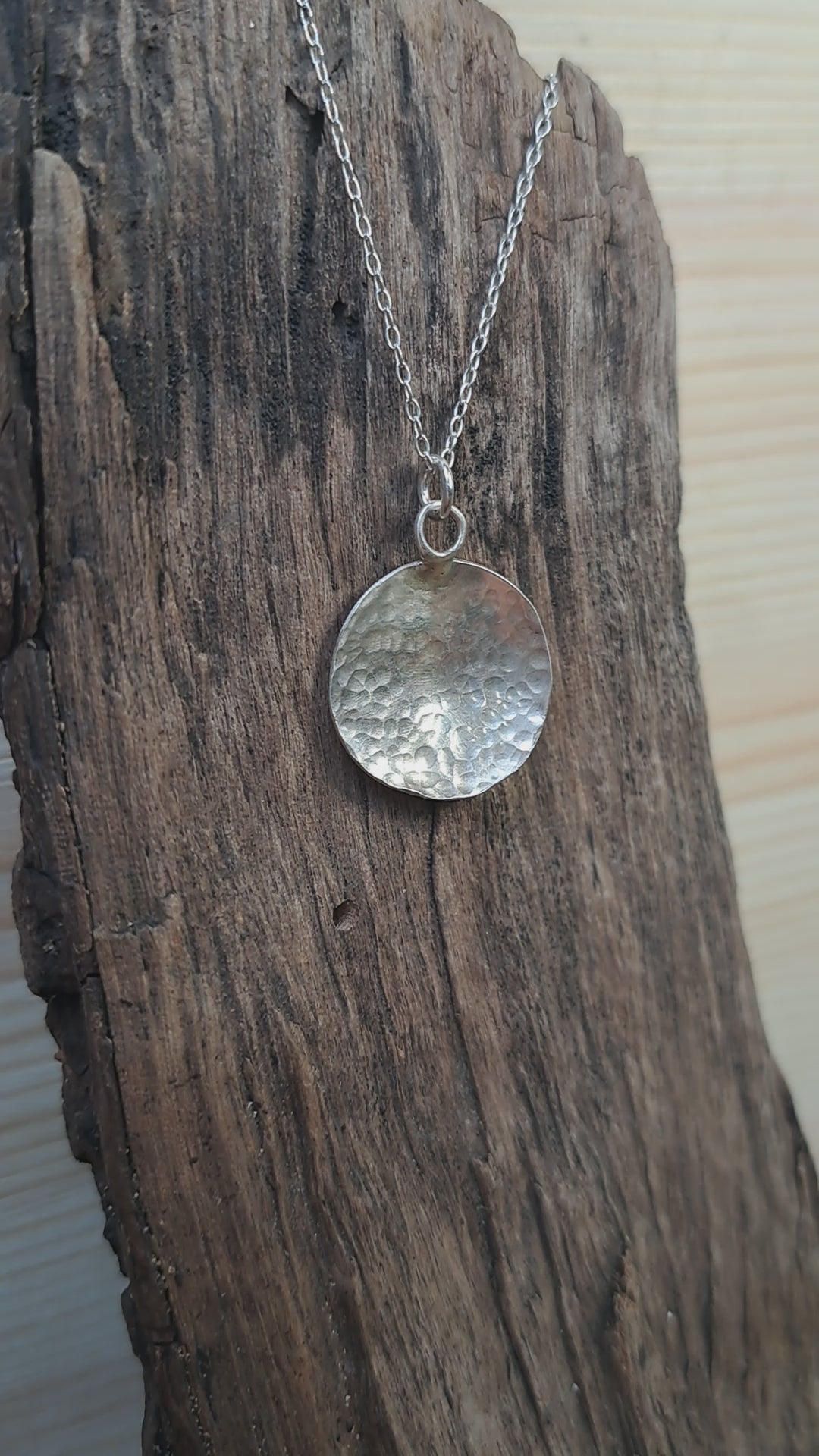 Handmade hammered dome shaped pendant crafted from 100% recycled sterling silver made in our very own workshop on the West Coast of Cumbria. Supplied with Sterling Silver 1.3mm Trace Chain 18"/45cm.