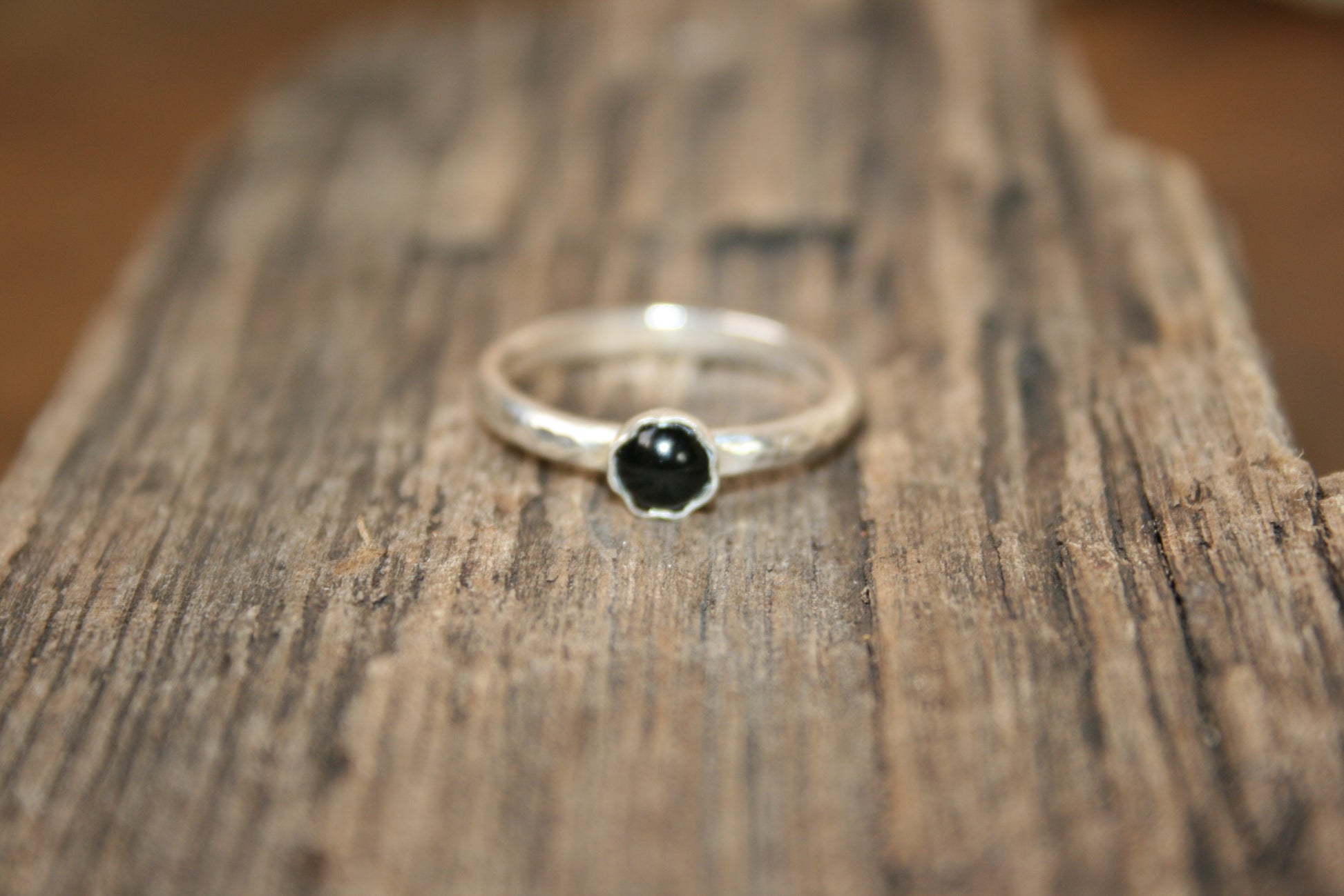 Sterling Silver Onyx Hammered Ring