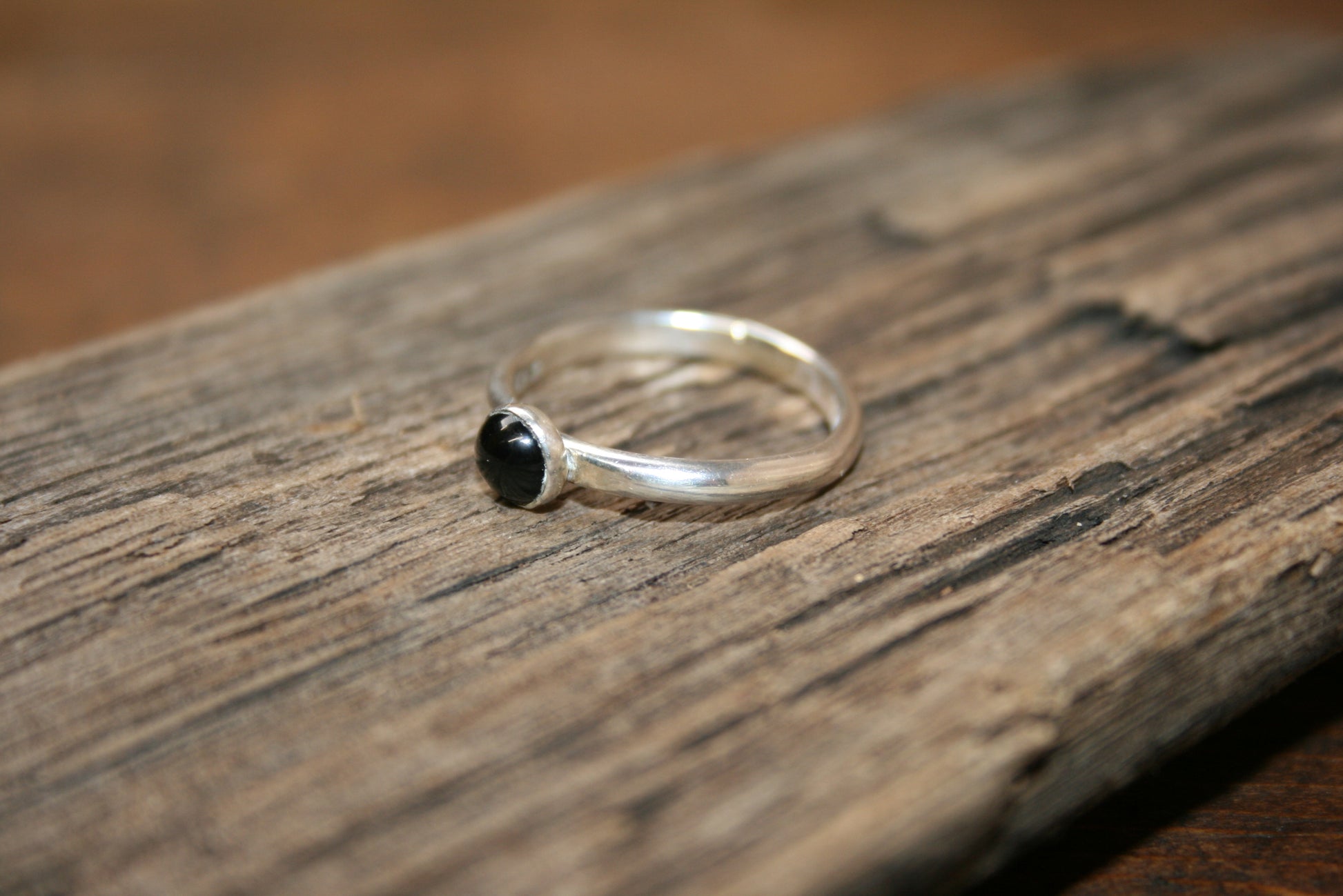 Bezel set onyx ring with a half round shank handmade from 100% recycled sterling silver. Made in our very own workshop on the West Coast of Cumbria. UK size M 1/2, Resizing available (£20). Please follow the link and add resizing to cart if this is required.