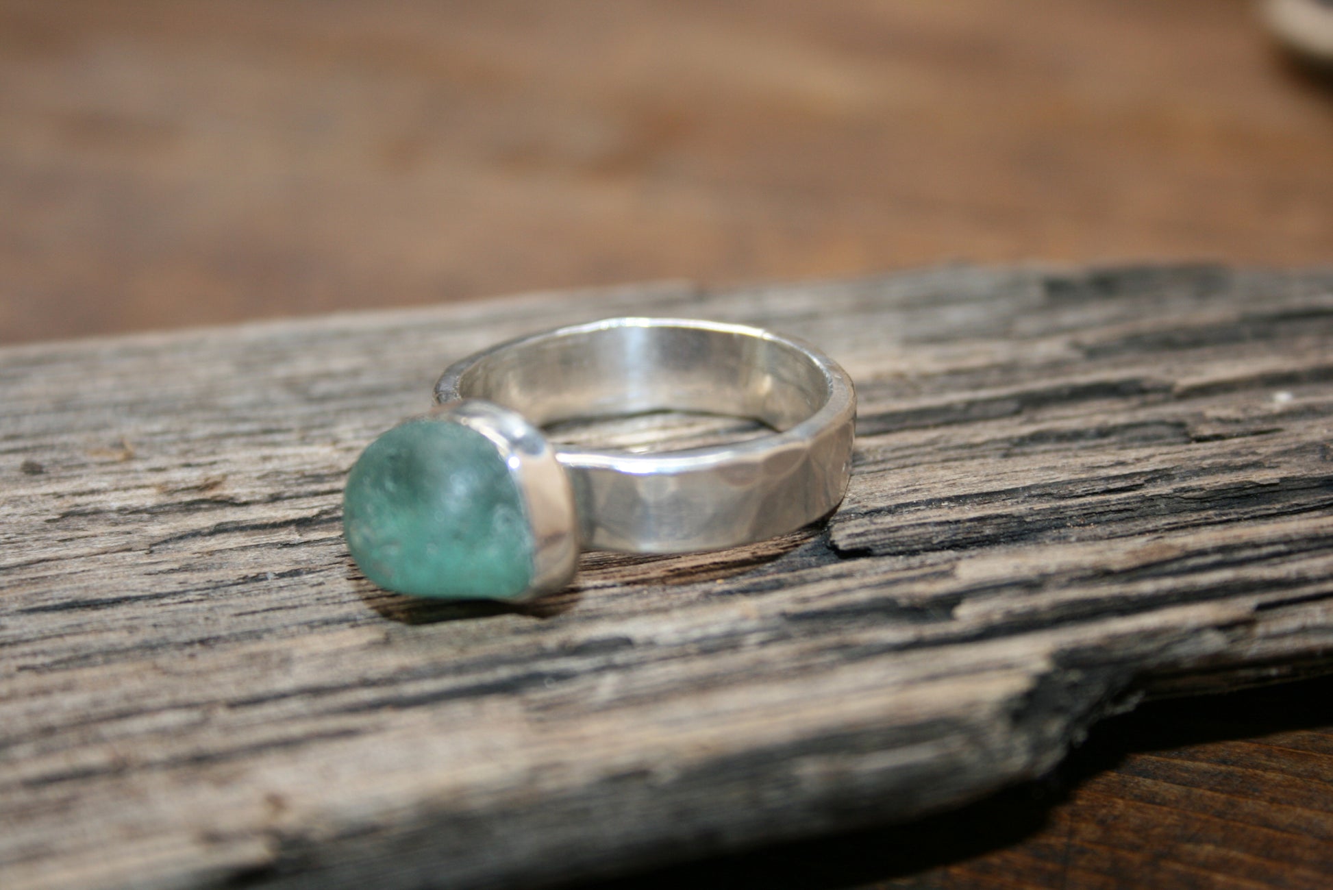 Chunky sea glass ring handmade from 100% recycled sterling silver and natural seafoam coloured sea. Made in our very own workshop on the West Coast of Cumbria. UK size Z+1, Resizing available (£20). Please follow the link and add resizing to cart if this is required.