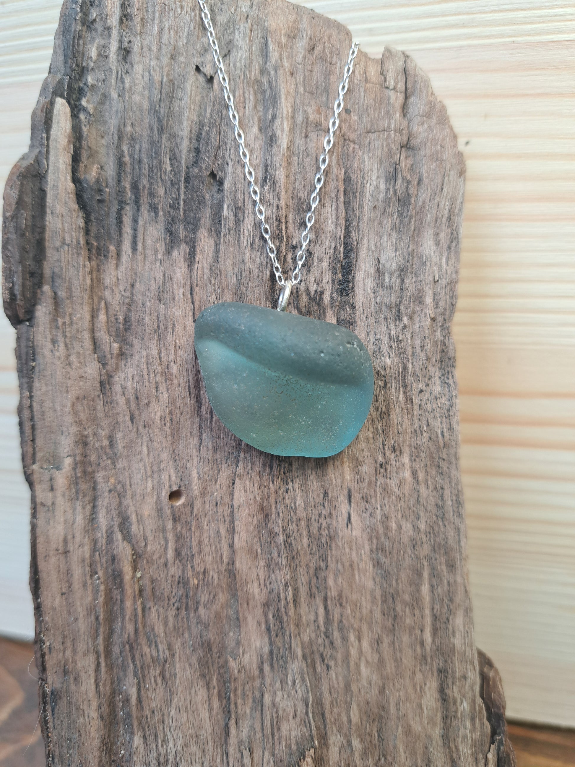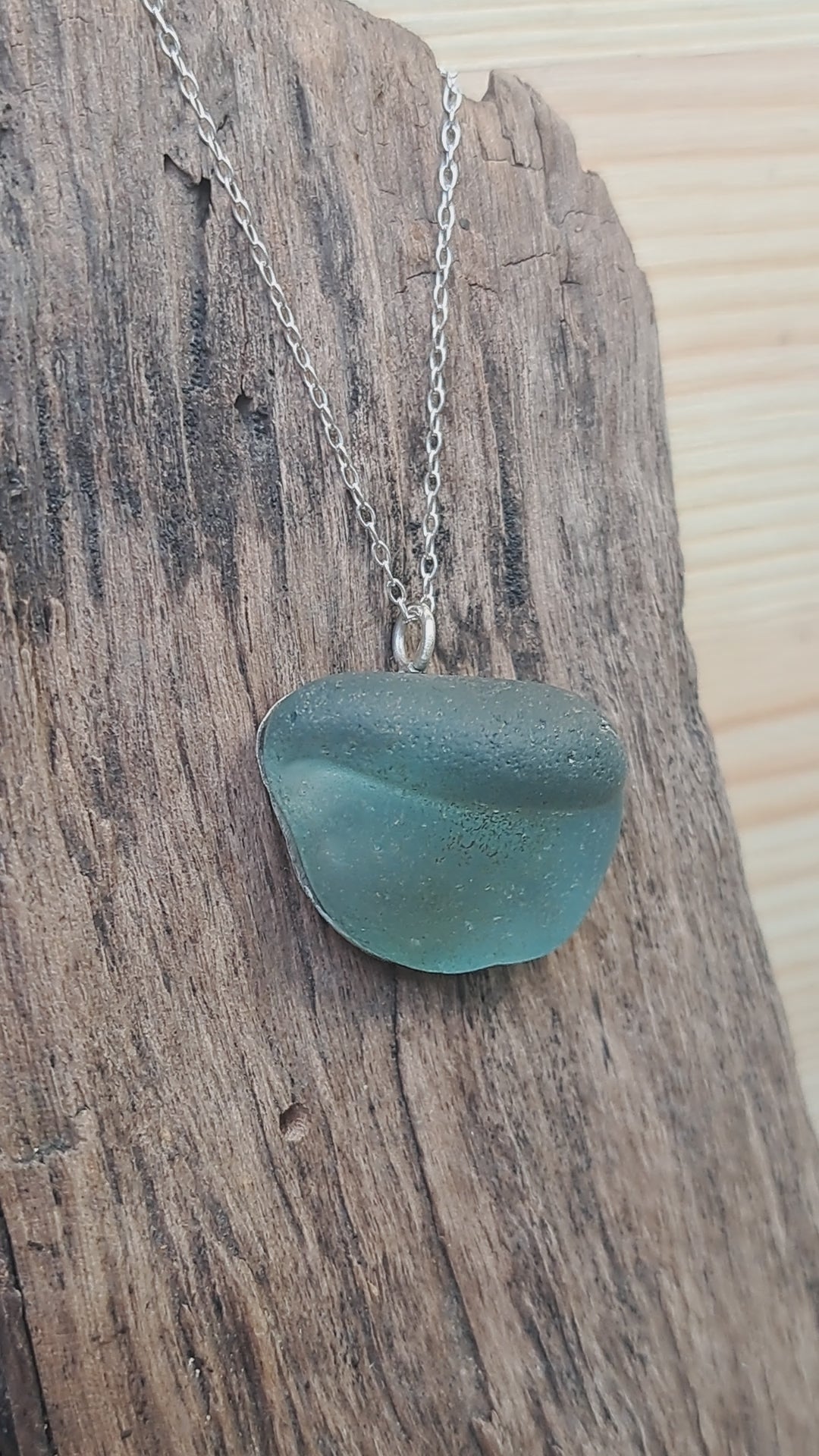 Seafoam coloured natural Cumbrian sea glass encased in 100% recycled sterling silver made in our very own workshop on the West Coast of Cumbria. Supplied with Sterling Silver 1.3mm Trace Chain 18"/45cm.