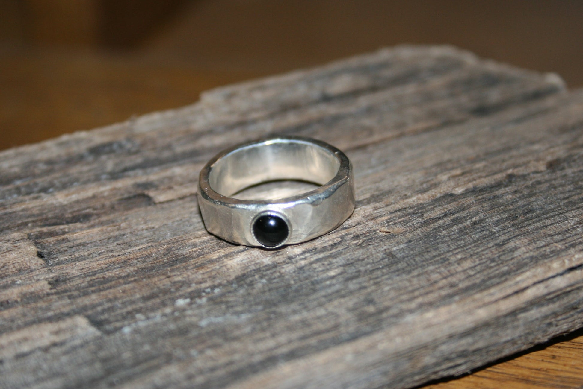 Sterling Silver Black Onxy Hammered Ring - Chunky