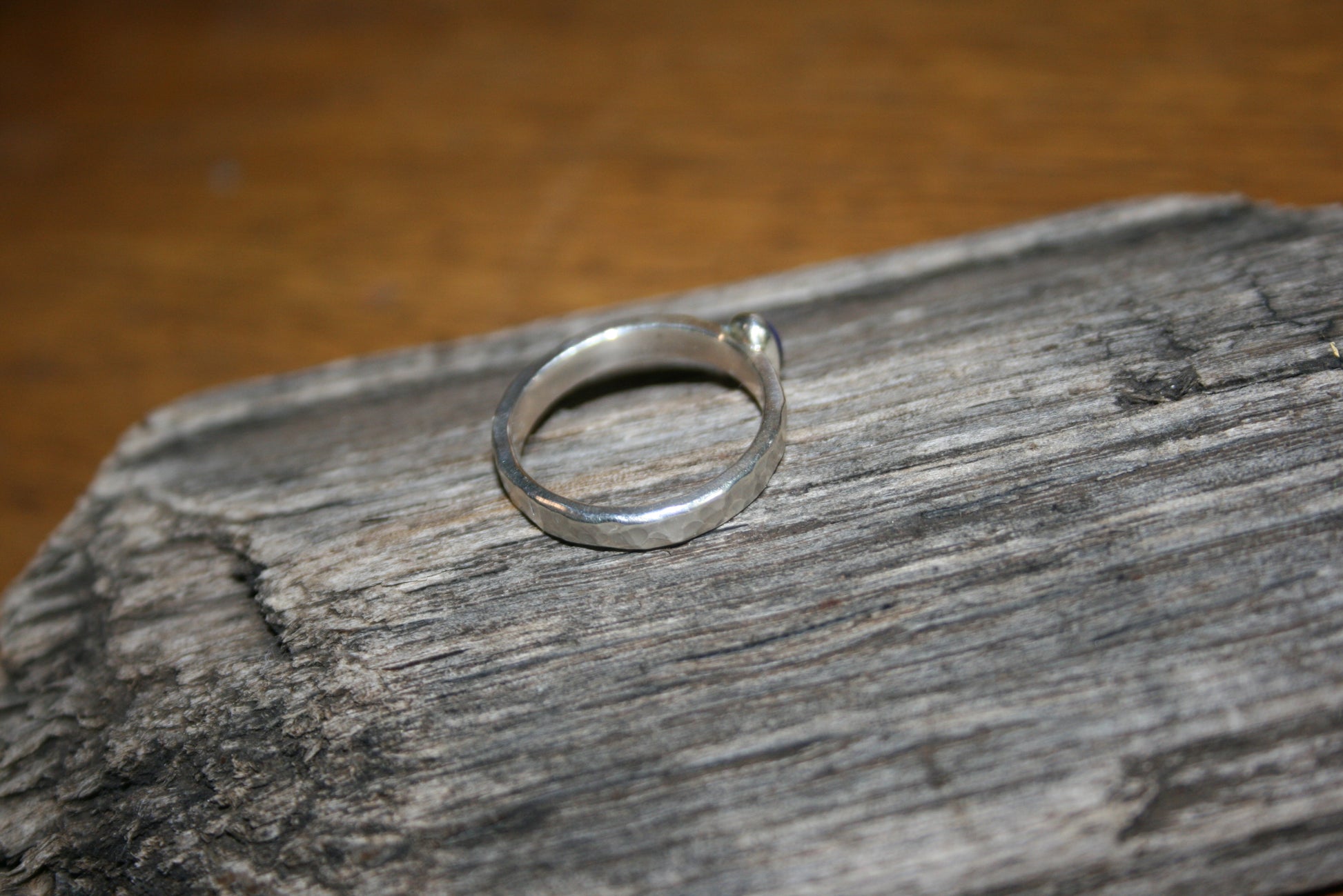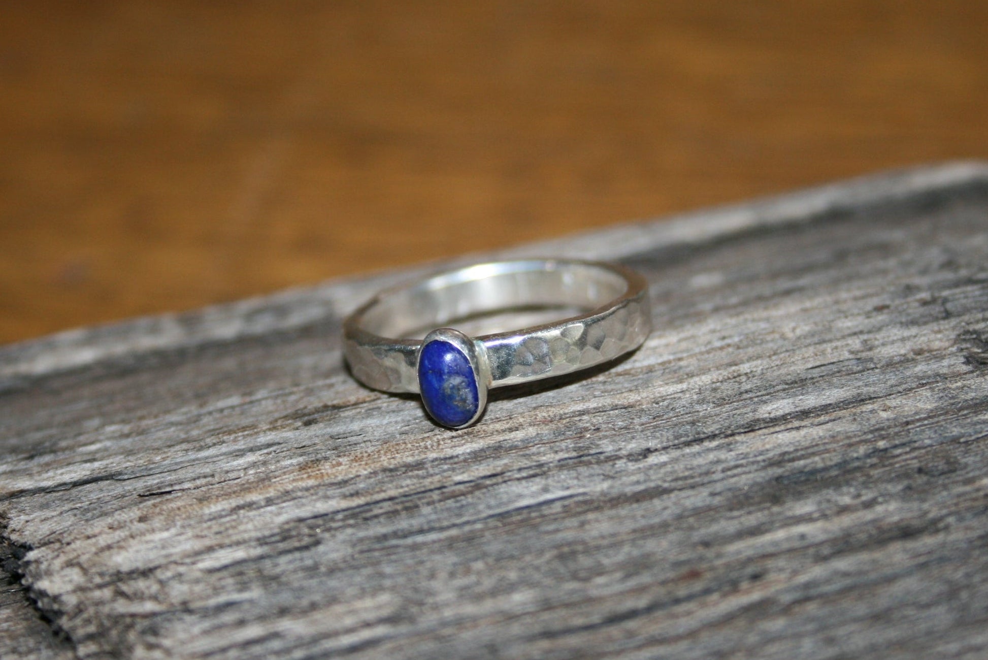Sterling Silver Lapis Lazuli Ring – Hammered, UK M
